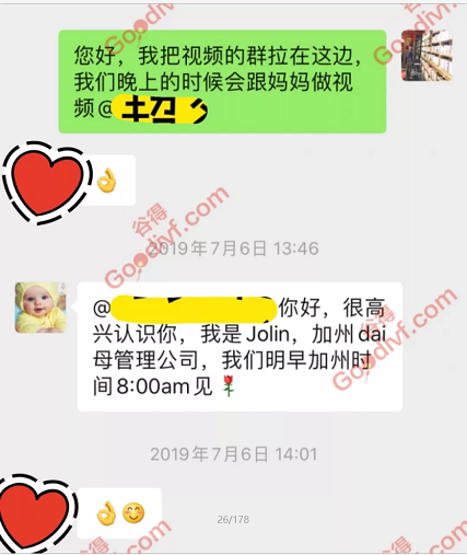 当天下午,X女士就在CSE选择了心仪的爱心孕妈妈。当天晚上,谷得个案经理就安排孕妈妈和X女士视频。小编老王卖瓜一波:咱们的效率还是很高的,也感谢孕妈妈的全力配合。