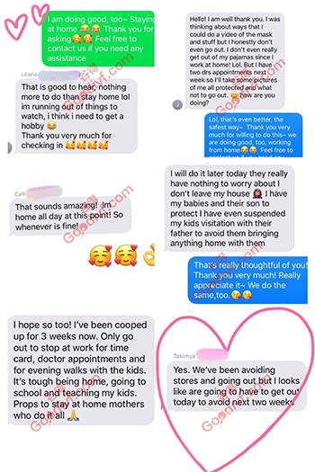 目前为止,谷得美国试管婴儿以及充满爱心的客人们都从国内支援了大批口罩。至今,谷得美国试管婴儿已经多次将口罩等防护物资,以邮寄的方式送到爱心妈妈们手中,保证爱心妈妈们能得到良好的保护。